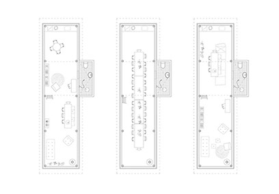 On a parallel working process, in order to draw a courtyard within the garden, we placed another house, independent from the existing one. The project is conceived as a minimal living space, able to adapt to many different ways of living, from a 20 people dinner to a classical house and its different rooms. It is a long and thin house offering a direct relation to the site.